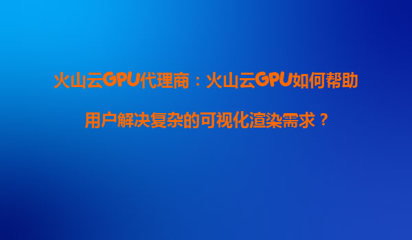 2025-08-26火山云GPU代理商:火山云GPU如何帮助用户解决复杂的可视化渲染需求? 引言 在数字化时代,高性能计算和可视化渲染已成为影视制作、游戏开发、建筑设计、科学模拟等领域的核心需求。...