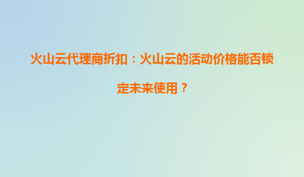 2025-08-24火山云代理商折扣:火山云的活动价格能否锁定未来使用? 在云计算服务市场竞争日益激烈的今天,企业和个人用户对于云服务的价格敏感度越来越高。火山云作为国内领先的云计算服务提供商,凭借其高性能、高可靠...
