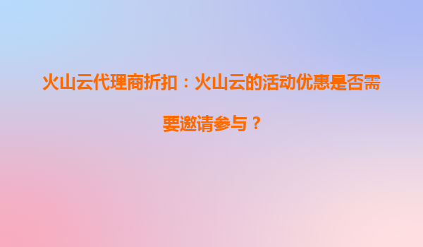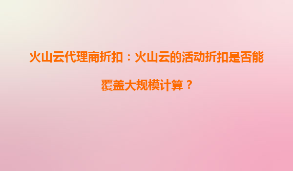 火山云代理商折扣:火山云的活动折扣是否能覆盖大规模计算? 引言 在当今数字化时代,云计算已成为企业IT基础设施的核心组成部分。无论是初创公司还是大型企业...
