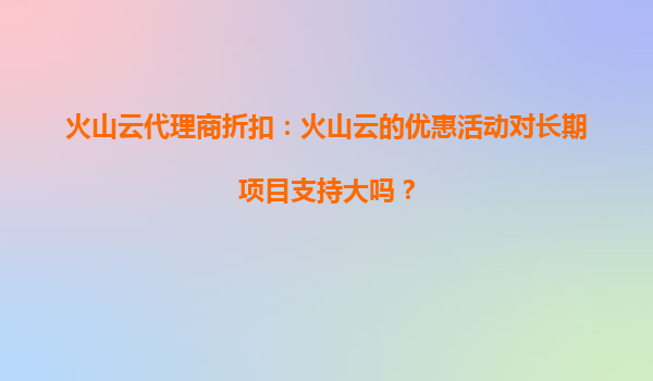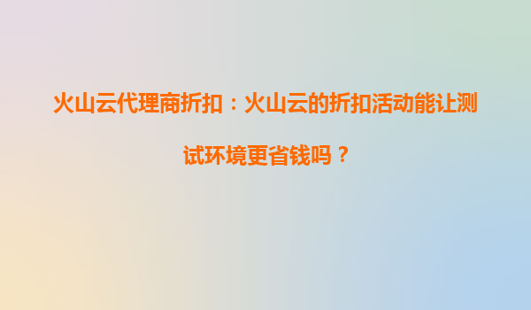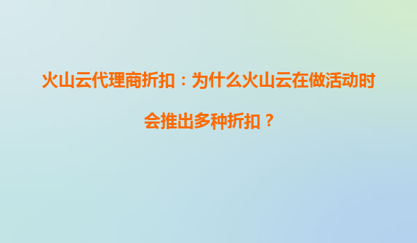 2025-08-24火山云代理商折扣:多重优惠背后的策略 火山云作为云计算领域的领先服务商,经常通过代理商推出多样化的折扣活动。这种策略并非偶然,而是基于对用户需求的深度洞察和市场环境的精准把握。通过多种折扣组合,火山云...