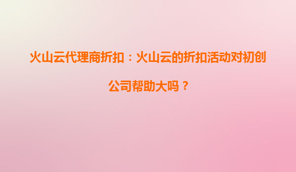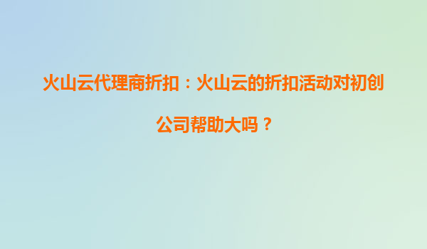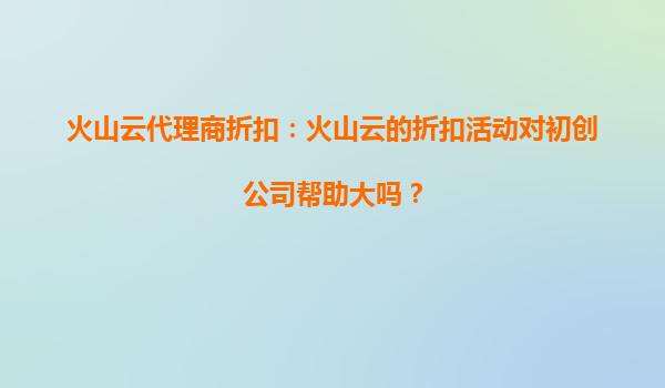2025-08-24火山云代理商折扣:火山云的折扣活动对初创公司帮助大吗? 一、火山云的核心优势 火山云作为字节跳动旗下的云计算服务品牌,凭借其技术积累和生态资源,在云计算领域具备以下核心优势: 高性...