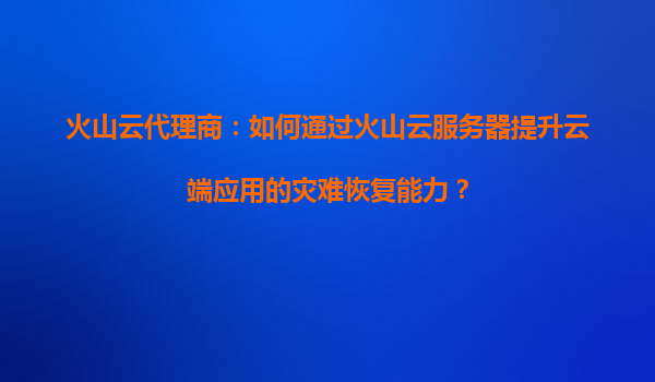 火山云代理商:如何通过火山云服务器提升云端应用的灾难恢复能力? 一、引言:云端应用灾难恢复的重要性 在数字化时代,企业业务对云端应用的依赖程度越来越高。然而,自然灾害、硬件故障、网络攻击等意外...