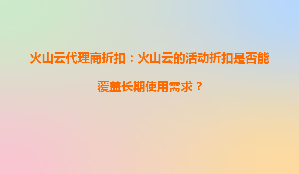 2025-08-23火山云代理商折扣:为什么火山云的折扣活动会受到年轻用户欢迎? 近年来,云计算服务逐渐成为企业和个人用户的首选,而火山云作为国内领先的云服务提供商之一,凭借其高性能、稳定性和灵活的定价策略...