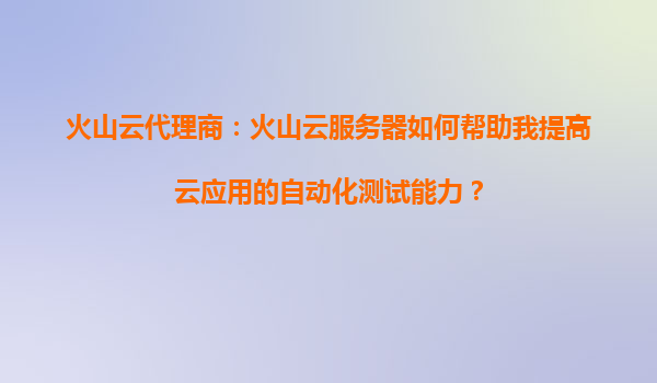 2025-08-23火山云代理商:火山云服务器如何帮助我提高云应用的自动化测试能力? 在当今快速发展的云计算时代,自动化测试已成为软件开发过程中不可或缺的一部分。通过自动化测试,企业可以显著提高测试效率、减少人为错误...