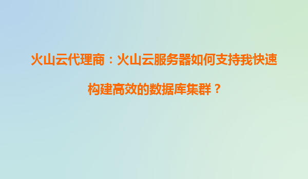 2025-08-23火山云代理商:火山云服务器如何支持快速构建高效的数据库集群 在当今数据驱动的商业环境中,构建高效、可靠的数据库集群是企业数字化转型的关键。火山云服务器(VolcanoEngine)凭借其强大的基础设施和丰富的...