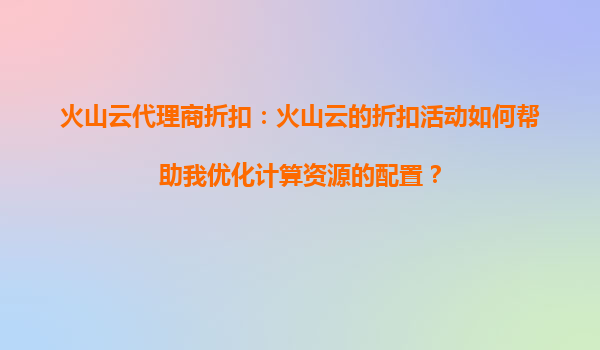 火山云代理商折扣:如何通过折扣活动优化计算资源配置 引言 在当今数字化时代,云计算已成为企业IT基础设施的核心组成部分。然而,随着业务规模的扩大,计算资...