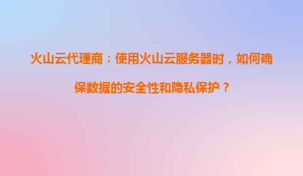 2025-08-23火山云代理商:使用火山云服务器时,如何确保数据的安全性和隐私保护? 引言 在数字化时代,数据安全与隐私保护已成为企业选择云服务时的核心考量。作为火山云...