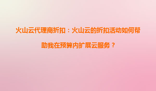 2025-08-22火山云代理商折扣:如何通过火山云的优惠活动降低企业的IT运维成本? 引言 在数字化转型的浪潮中,企业IT运维成本的控制成为许多公司关注的焦点。云计算服务因其弹性、高效和低成本的特点,逐渐成...