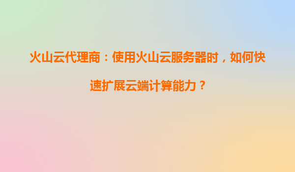 2025-08-22火山云代理商指南:如何快速扩展云端计算能力 一、云计算弹性扩展的核心需求 在数字化转型浪潮中,企业业务常面临流量突增、季节性高峰或突发算力需求。传统IT架构扩容周...