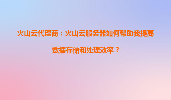 2025-08-22火山云代理商:火山云服务器如何帮助我提高数据存储和处理效率? 在当今数字化时代,数据已成为企业运营的核心资产。高效的数据存储和处理能力不仅能提升业务响应速度,还能降低成本、增强竞争力。作为火山引擎...