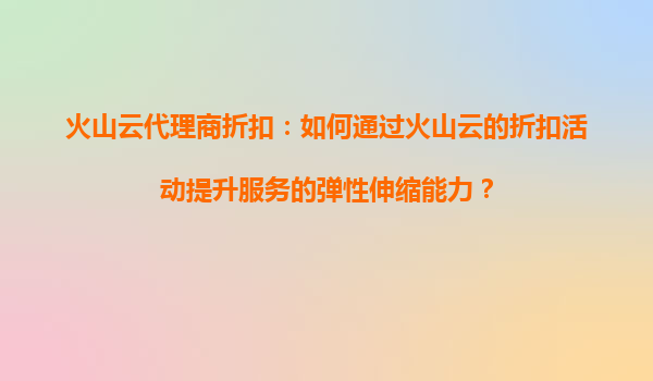 2025-08-22火山云代理商折扣:如何通过火山云的折扣活动提升服务的弹性伸缩能力? 引言 在当今快速发展的云计算市场中,企业对于资源的弹性伸缩能力需求日益增长。火山云...