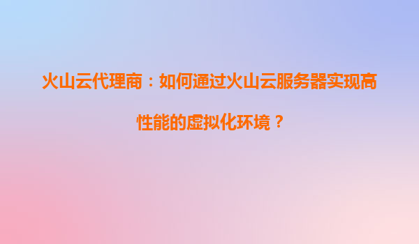 2025-08-22火山云代理商:如何通过火山云服务器实现高性能的虚拟化环境? 一、火山引擎的核心优势与虚拟化能力 火山引擎作为字节跳动旗下的云计算服务平台,凭借其底层基础设施的弹性和高性能计算能力,为虚拟化环境...