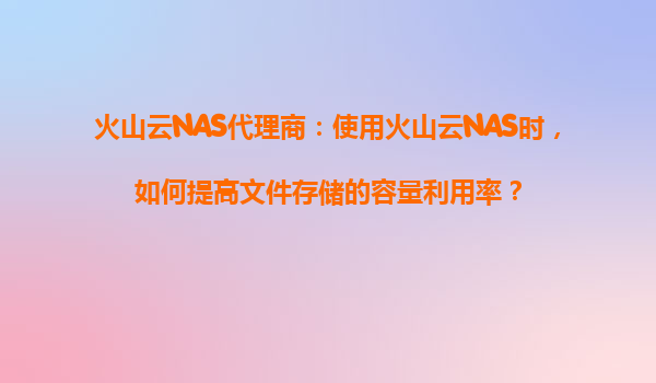 2025-08-22火山云NAS代理商:如何提高文件存储的容量利用率? 一、引言 在当今数据爆炸式增长的时代,企业对于高效、可靠的文件存储需求日益迫切。火山云NAS(NetworkAttachedStorage)作为火山...