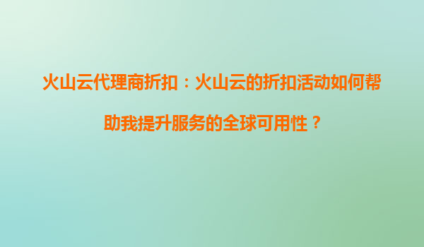 2025-08-22火山云代理商折扣:如何利用折扣活动提升服务的全球可用性 在全球数字化浪潮中,企业对于云计算服务的需求日益增长,而火山云作为领先的云服务提供商,凭借其卓越的性能、灵活的定价策略以及代理商的...