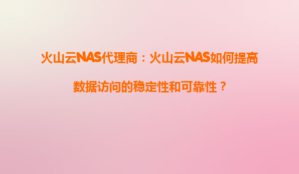 2025-08-22火山云NAS代理商:火山云NAS如何提高数据访问的稳定性和可靠性? 引言 在当今数字化时代,企业对数据存储和访问的需求不断增长。无论是企业内部的协作文件共享...