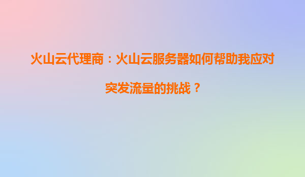 2025-08-22火山云代理商:火山云服务器如何帮助我应对突发流量的挑战? 一、突发流量的挑战与应对需求 在数字化时代,企业经常会面临流量突发的情况,例如电商大促、新品发布、热门活动或突发新闻事件等。这些场景可能导...