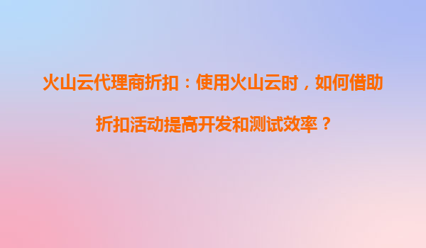 2025-08-22火山云代理商折扣:使用火山云时,如何借助折扣活动提高开发和测试效率? 一、火山云的核心优势与开发测试效率提升 火山云作为领先的云计算服务提供商,通过弹性资源分配...