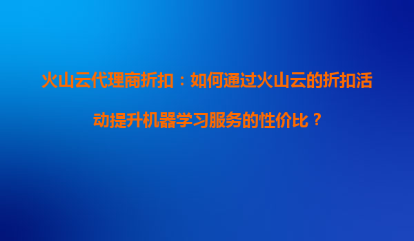 火山云代理商折扣:如何通过火山云的折扣活动提升机器学习服务的性价比? 在当下数字化转型的浪潮中,云计算和机器学习服务成为企业降本增效的核心工具。然而,高昂的计算资源成本往往成为中小企业或初创...