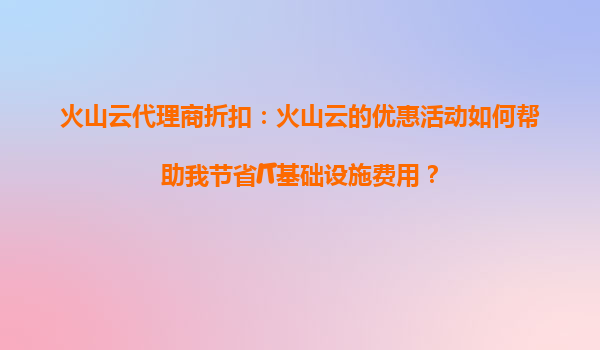 2025-08-22火山云代理商折扣:如何通过优惠活动节省IT基础设施费用 引言 在数字化转型的浪潮下,企业对于IT基础设施的需求日益增长。然而,自建和维护IT基础设施不仅成本...