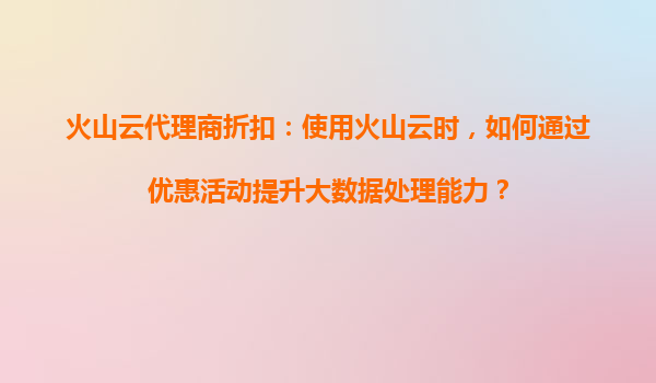 2025-08-22如何通过火山云代理商折扣提升大数据处理能力? 一、火山云在大数据处理中的核心优势 火山云作为领先的云计算服务提供商,其大数据处理解决方案具有以下突出优势: ...