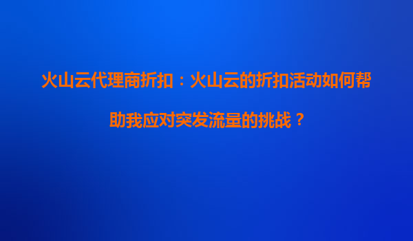 2025-08-22火山云代理商折扣活动如何帮助企业灵活应对突发流量 在数字化业务快速发展的今天,企业常面临用户访问量突然激增的情况。无论是促销活动、热点事件还是季节性业务高峰,流量激增如果处理不当,可能导致服务宕机、用...