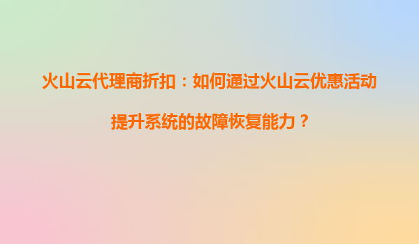 2025-08-22火山云代理商折扣:如何通过火山云优惠活动提升系统的故障恢复能力? 一、火山云的核心优势与故障恢复能力的关系 火山云作为领先的云计算服务提供商,通过其分布式架构、全球节点覆盖和智...