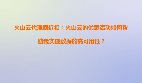 2025-08-21火山云代理商折扣:火山云的优惠活动如何帮助我实现数据的高可用性? 一、火山云的独特优势助力数据高可用性 在当前数字化时代,数据高可用性已成为企业运营的核心需求。火山云作为领先的云计算服...