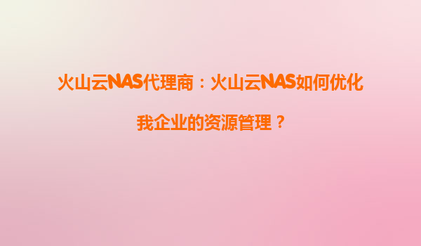 2025-08-21火山云NAS代理商:火山云NAS如何优化我企业的资源管理? 引言 在当前数字化时代,数据已成为企业最重要的资产之一。如何高效、安全地管理和存储这些数据,是企业面临的一大挑战。火山云NAS作为一种高性能、高可...