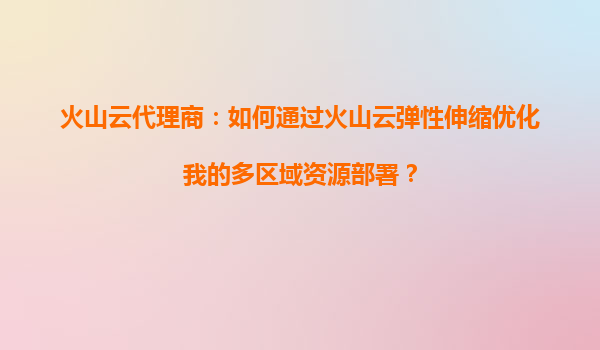 2025-08-20火山云代理商:如何通过火山云弹性伸缩优化多区域资源部署 在数字化转型加速的今天,企业需要更加灵活、高效地管理其IT资源。多区域资源部署不仅能够提升服务的可靠性和响应速度,还能够更好地满...