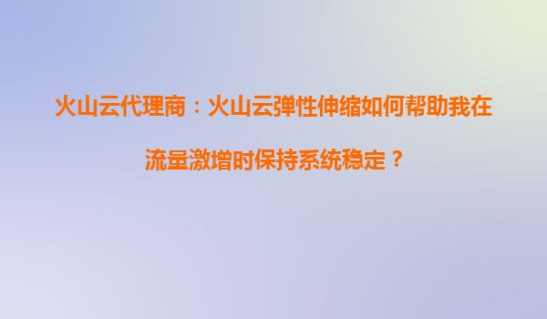 2025-08-20火山云代理商:火山云弹性伸缩如何帮助我在流量激增时保持系统稳定? 引言 在数字化时代,企业业务的快速发展和用户量的急剧增加常常导致流量突增。如果系统无法及时应对,可能会导致服...