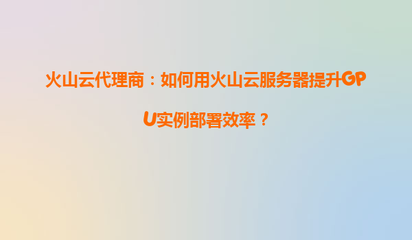 2025-08-19火山云代理商:如何用火山云服务器提升GPU实例部署效率? 一、GPU实例部署的挑战与需求 在AI训练、科学计算、实时渲染等高算力场景中,GPU实例的部署效率和稳定性直接影...