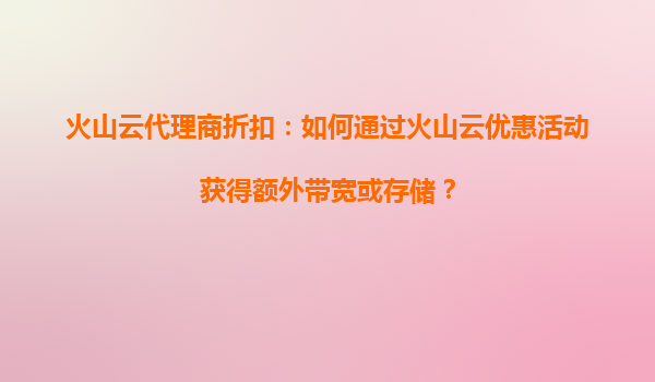 2025-08-19理解火山云代理商的折扣机制 火山云作为云计算服务的领先提供商,通过代理商模式为用户提供灵活的折扣方案。用户可以通过注册成为代理商或与现有代理商合作,享受更低的资源使用成本。代理商折扣通常根据用户的消费...
