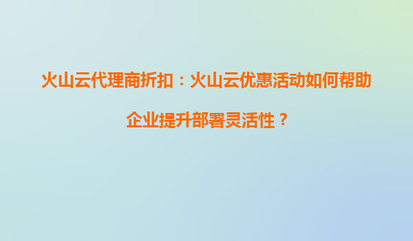 2025-08-19火山云代理商折扣:火山云优惠活动如何帮助企业提升部署灵活性? 一、火山云优惠活动的核心价值 火山云作为企业级云计算服务提供商,通过代理商折扣和限时优惠...