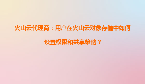 2025-08-19火山云代理商指南:用户在火山云对象存储中如何设置权限和共享策略 引言 随着企业数字化转型的深入,存储和管理海量数据的需求日益增长。火山引擎作为字节跳动旗下的云计算服务平台,其对象存储服务(...