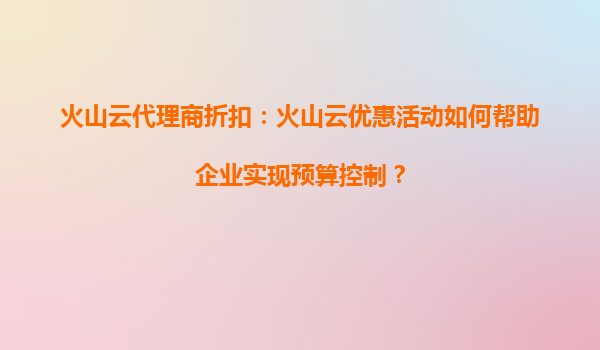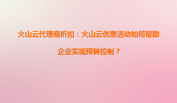 2025-08-19火山云代理商折扣:火山云优惠活动如何帮助企业实现预算控制? 1.云计算时代的企业挑战与预算管理 在数字化转型加速的今天,云计算已成为企业IT基础设施的核心组成部分。然而,随着业务规模的扩大和云资源使用量的...