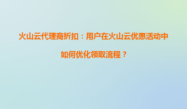 2025-08-19火山云代理商折扣:用户在火山云优惠活动中如何优化领取流程? 一、火山云与代理商的协同优势 火山云作为领先的云计算服务提供商,凭借高性能计算资源、弹性扩展能力和全...