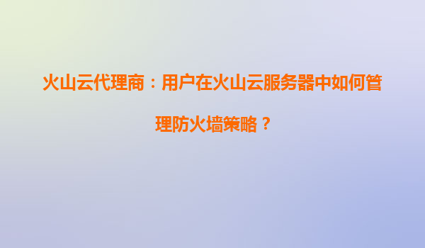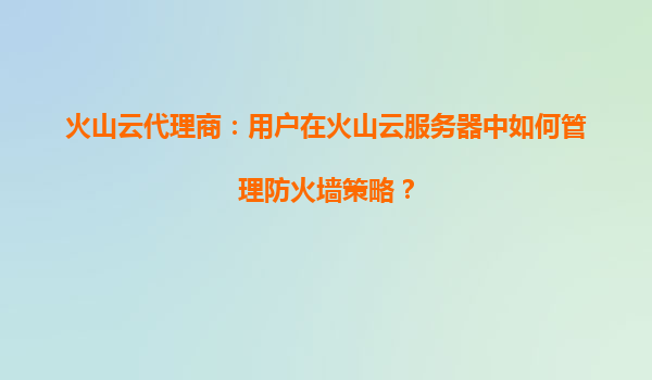 2025-08-19火山云代理商:用户如何在火山云服务器中管理防火墙策略? 一、火山云防火墙管理概览 在数字化转型的浪潮中,云计算的安全防护成为企业关注的核心。作为火山引擎(VolcanoEngine)的重...