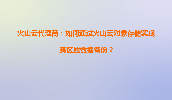 2025-08-18火山云代理商:如何通过火山云对象存储实现跨区域数据备份? 一、跨区域数据备份的重要性 在数字化时代,数据已成为企业的核心资产。无论是金融交易记录、医疗...