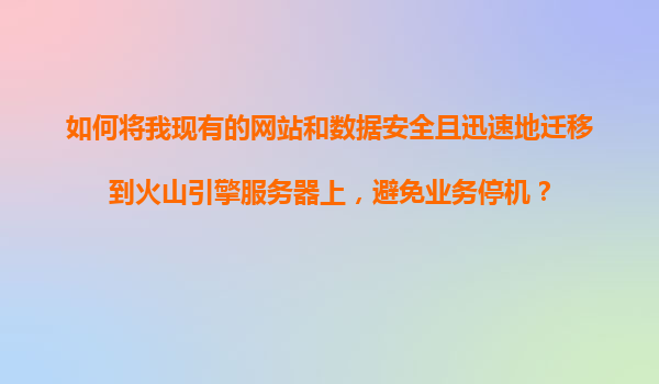 2025-11-08如何将我现有的网站和数据安全且迅速地迁移到火山引擎服务器上,避免业务停机? 随着云计算技术的快速发展,越来越多的企业选择将业务迁移到云端,以提高灵活性、降低成本并增强安全性。火山引擎作为字节跳动旗...
