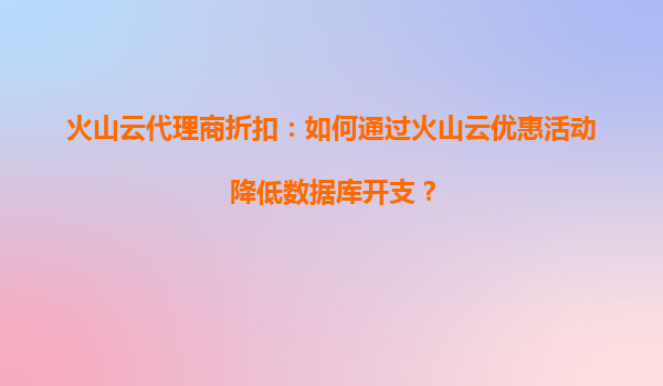 2025-08-18火山云代理商折扣:如何通过火山云优惠活动降低数据库开支? 一、火山云的核心优势与数据库服务价值 火山云作为字节跳动旗下的云计算品牌,凭借其全球分布式基础设施、高性能计算能力和弹性扩展架构,为企...