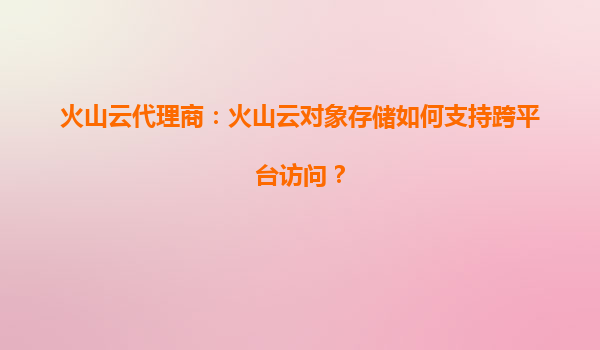 2025-08-18火山云代理商:火山云对象存储如何支持跨平台访问? 一、火山云对象存储的核心优势 火山引擎旗下的火山云对象存储(VolcanoObjectStorage,VOS)是一款高性能、高可靠的云存储服务,专为跨平台数据访问设...