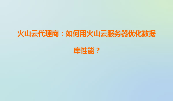2025-08-18火山云代理商:如何用火山云服务器优化数据库性能? 一、火山引擎的核心优势与数据库性能优化 火山引擎作为字节跳动旗下的云计算服务平台,凭借其高性能计算资源、弹性扩展能力和全球化基础设施,为数据库...