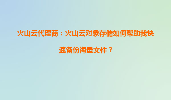 火山云代理商:火山云对象存储如何帮助我快速备份海量文件? 一、海量文件备份的痛点与需求 在数字化时代,企业对海量文件(如设计图纸、监控视频、数据库备份等)的存储需求呈指数级增...