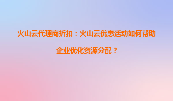 2025-08-17火山云代理商折扣:火山云优惠活动如何帮助企业优化资源分配? 一、引言 在数字化转型的浪潮下,云计算已成为企业优化运营效率、降低成本的核心工具。火山云作为领先的云服务提供商,凭...