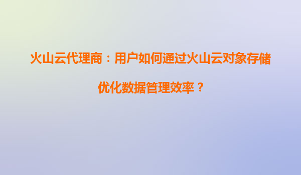 2025-08-17火山云代理商:用户如何通过火山云对象存储优化数据管理效率 在数字化转型的浪潮中,企业面临海量数据存储与管理的挑战。火山引擎提供的火山云对象存储(TOS)凭借高性能、高可靠和易用性,成为企业优化数据管理效...