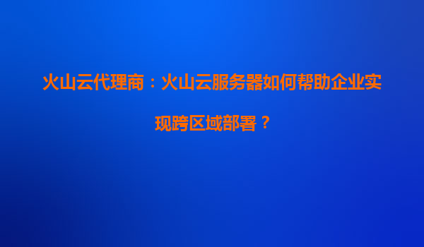 2025-08-17火山云代理商:火山云服务器如何帮助企业实现跨区域部署? 一、企业跨区域部署的核心需求与挑战 在全球化竞争和数字化转型的浪潮下,企业业务跨区域扩张已成为常态。但同时面临以下挑战: ...