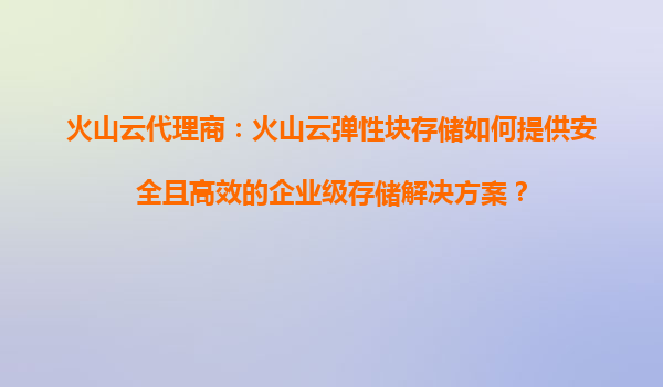 2025-08-16火山云代理商:火山云弹性块存储如何提供安全且高效的企业级存储解决方案? 一、企业级存储的核心挑战与需求 在当前数字化转型的浪潮中,企业对存储系统的要求日益严苛:数据安全性、高性能访问、弹性扩展能...