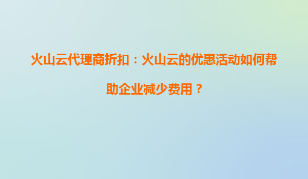 2025-08-16火山云代理商折扣:如何借助火山云优惠活动帮助企业减少费用? 引言:企业上云的成本挑战 在数字化转型的浪潮中,云计算已成为企业降本增效的重要工具。然而,随着业务...
