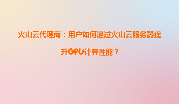 2025-08-16火山云代理商:用户如何通过火山云服务器提升GPU计算性能? 一、GPU计算的重要性与市场需求 随着人工智能、深度学习、大数据分析和科学计算的快速发展,对高性...