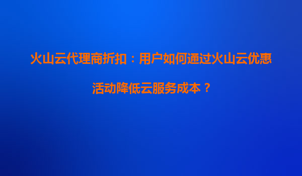 2025-08-17火山云代理商折扣:用户如何通过火山云优惠活动降低云服务成本? 一、火山云的竞争优势与核心价值 火山云作为字节跳动旗下的云计算品牌,凭借其技术生态和全球...
